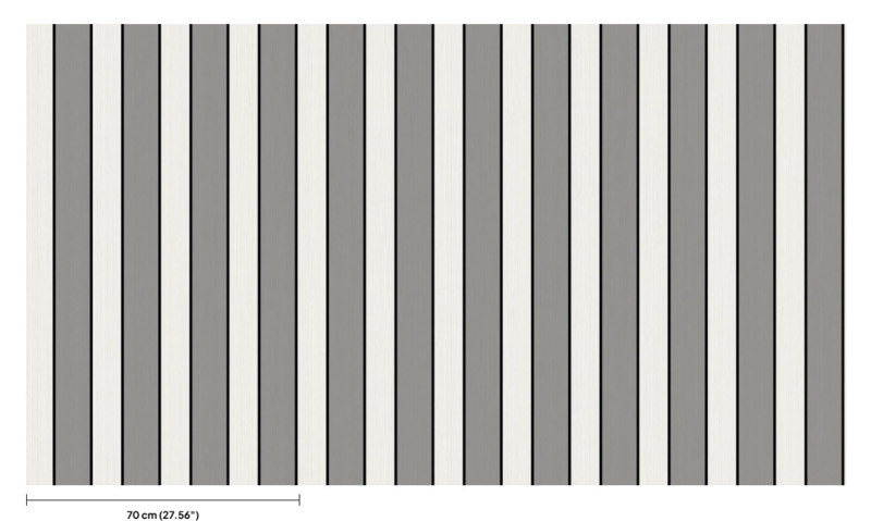 Listras 90795 uit de Stripes & Stripes-collectie van Hookedonwalls is streepbehang dat net iets meer doet dan verwacht. Brede verticale banen in grijs en gebroken wit, afgebakend door een smalle donkergrijze contourlijn langs elke grijze baan. Dat detail maakt het verschil. Listras heeft de structuur van een klassiek streepdessin, maar de precisie en gelaagdheid van een bewust ontworpen interieurpatroon. De keuze voor wie een neutrale wand wil met grafisch raffinement.