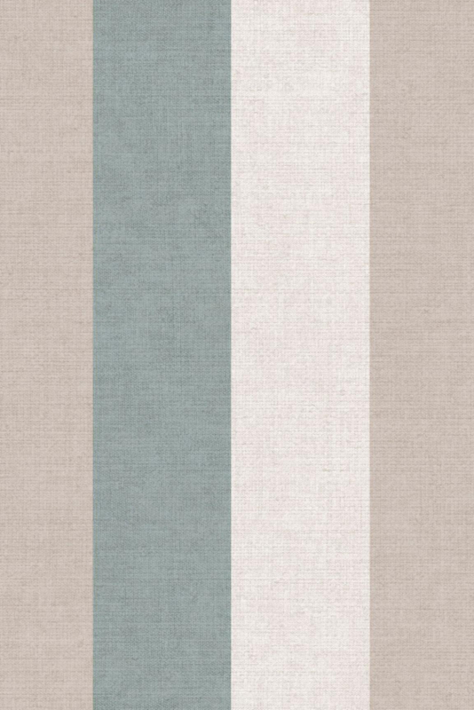- Brede verticale banen in blauw, lichtgrijs en grijs in een gelijkmatig driekleurig ritme