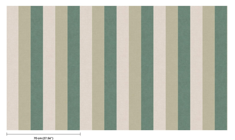 Strixxi 90768 uit de Stripes & Stripes-collectie van Hookedonwalls is streepbehang met een aardse, botanische driekleurige compositie. Brede verticale banen in groen, vergrijsd groen en lichtbeige wisselen elkaar af in een vast, gelijkmatig ritme op een ondergrond met linnentextuur. De drie tinten zijn verwant maar onderscheidend genoeg om de wand diepte en ritme te geven. Strixxi 90768 is de keuze voor wie de natuur naar binnen wil halen zonder te overdrijven.