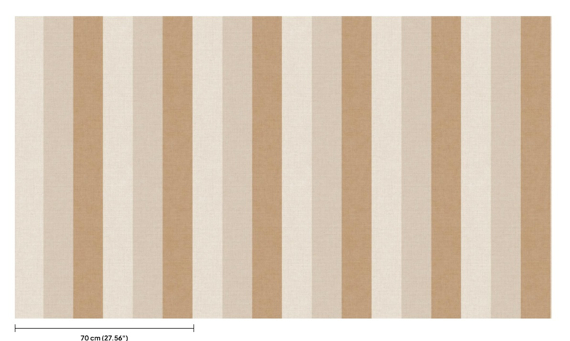 Strixxi 90765 uit de Stripes & Stripes-collectie van Hookedonwalls is streepbehang met een warme, aardse driekleurige compositie. Brede verticale banen in twee beige tinten en licht goudbruin wisselen elkaar af in een vast, gelijkmatig ritme op een ondergrond met linnentextuur. De drie tinten liggen dicht bij elkaar maar geven de wand toch duidelijk ritme en diepte. Strixxi is de keuze voor wie een warme, neutrale wand wil met meer dan één dimensie.