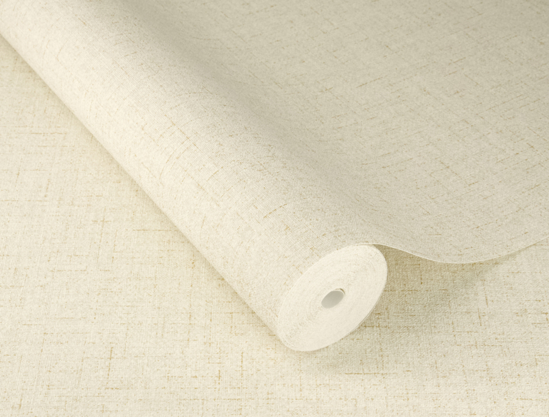435634 uit de Noble Zen-collectie van Rasch is effen structuurbehang in gebroken wit en beige met een fijne geweven linnenstructuur en goudkleurige draden. Licht van toon, warm van karakter. Een verfijnde basiskleur die elke ruimte openhoudt en toch diepte geeft.
