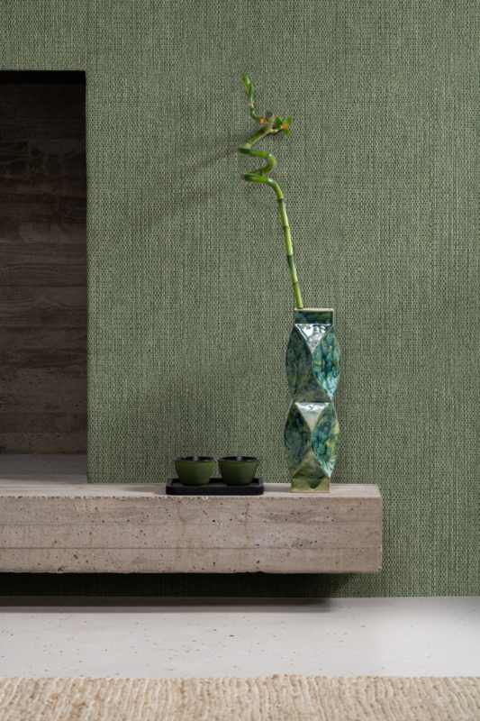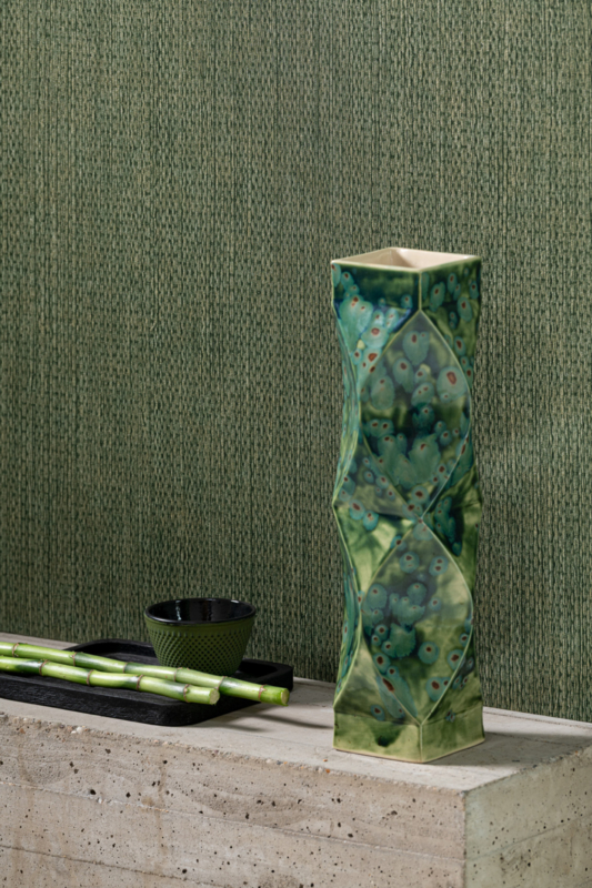 - Effen diep olijfgroen met een uitgesproken verticale bamboestextuur