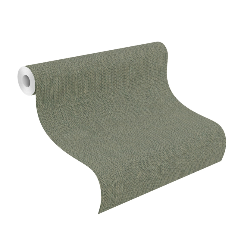 435573 uit de Noble Zen-collectie van Rasch is effen structuurbehang in diep olijfgroen met een uitgesproken verticale bamboestextuur. Donker van toon, rijk van karakter. Een kleur die een ruimte direct diepte, sfeer en een organische uitstraling geeft.