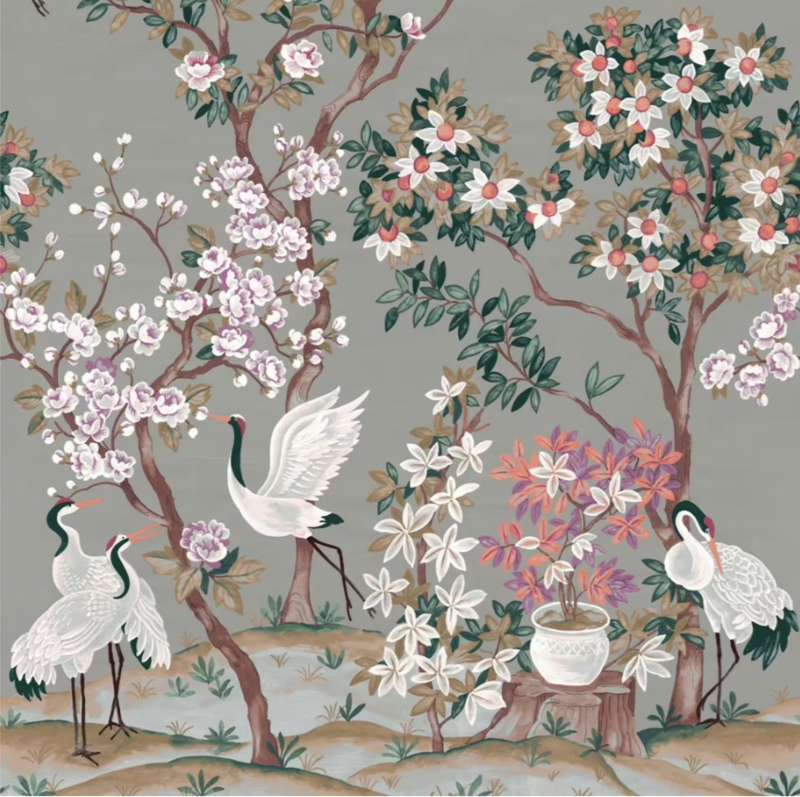 - Chinoiserie-motief in een gedempte, eigentijdse kleurstelling