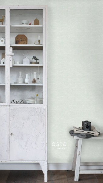 Dit behang effen uni met linnen textiel structuur past in ieder interieur. Het brengt warmte en rust. Linnen is een materiaal dat in een handomdraai een rustiek effect aan je interieur geeft. Het is een makkelijk bewerkbaar materiaal en daardoor zie je het op allerlei manieren terug komen in interieurs. Van gordijnen tot lampenkappen met linnen kun je alle kanten op. In vergrijsd licht pastel mint groenop een extra matte krijtverf ondergrond uitstraling met een natuurlijke milieuvriendelijke eco texture structuur. Dit behang past heel goed in een bohemian woonstijl!