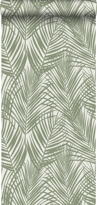 Met dit behang met palmbladeren in vergrijsd olijfgroen creëer je thuis je eigen Urban Jungle en maak je van je muur een echte eye-catcher. Dit hippe behang past helemaal bij de tropische botanische look. Wil je de look compleet maken? Combineer dit behang dan met lichte kleuren, natuurlijke materialen en niet te vergeten: heel veel planten.