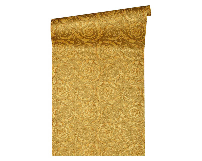 Exotisch ontmoet weelderige kleuren: de all-over prints van de serie combineren tropische paradijsvogels met de gouden barokke details die zo kenmerkend zijn voor Versace.