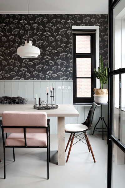 Dit sfeervolle behang met schermbloemen in zwart en wit past perfect bij een Scandinavische woonstijl. Met zachte kleuren, natuurlijke materialen en vintage meubels & accessoires haal je die typische Scandinavische look in huis. Een Scandinavisch interieur oogt licht en rustgevend, maar is tegelijkertijd ook warm en gezellig. Het is daarom niet gek dat de Scandinavische stijl wereldwijd zo ontzettend populair is.