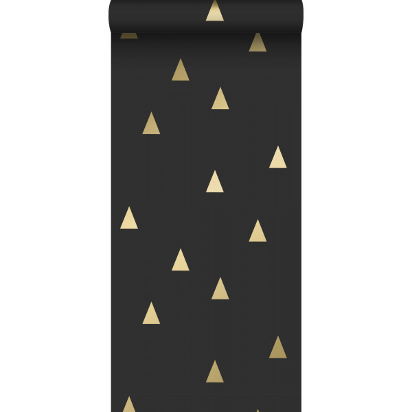 Maak van je muur een stijlvolle eye-catcher met dit prachtige zwart en gouden behang met grafische driehoeken. Het dessin vormt de perfecte basis voor een fris, modern interieur.