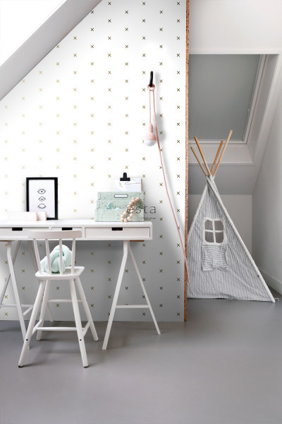 Breng een vleugje goud in je interieur met dit schitterende behang met gouden grafisch motief. Het behang maakt van je muur een stijlvolle eye-catcher en zorgt voor een luxe en warme sfeer in huis.