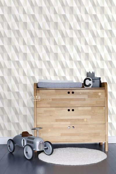 Creëer een fantastische kinderkamer met dit hippe kinderbehang met grafische driehoeken in zilver, grijs en beige. Het behang zorgt voor een gezellige sfeer en je kunt het mooi combineren met lichte kleuren en natuurlijke materialen.