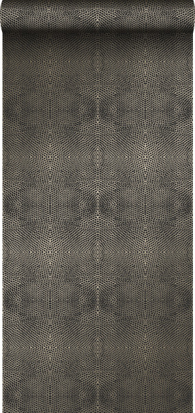 Geef je interieur een exotische touch en creëer een warme en levendige sfeer met dit prachtige behang met dierenhuidprint in zwart en glanzend brons. De glanseffecten verrijken bovendien het dessin en geven het behang luxe en elegante uitstraling.