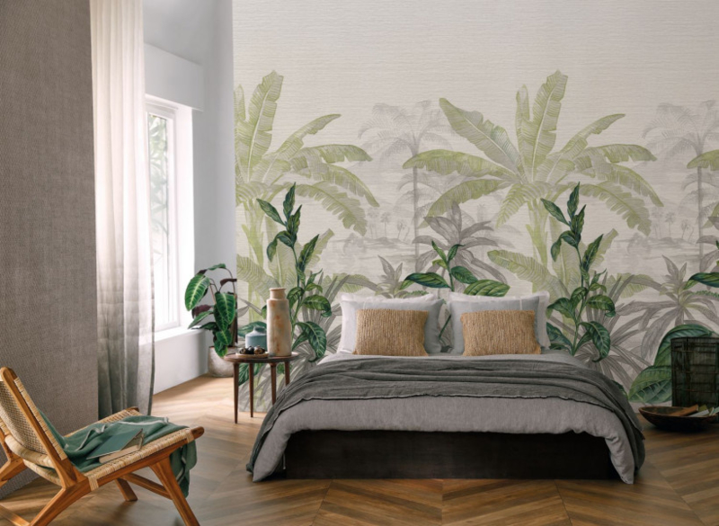 De patronen van dit behang herhalen zich, waardoor het mogelijk is meerdere panelen naast elkaar te plakken.