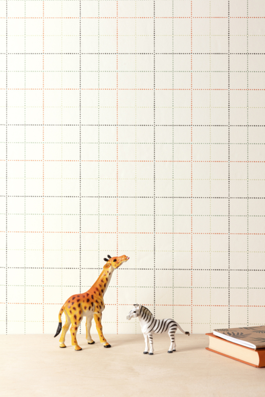 De combinatie van kleurige stippen en het vierkante ontwerp vormen een unieke achtergrond voor een leuke kinderkamer.