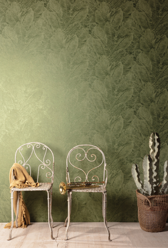 Juan gebruikt craquelé en voegt er een tropisch blad aan toe, afgewerkt met een glanzende techniek en beschikbaar in neutralere kleuren.