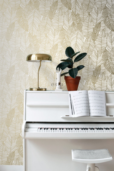 Esta Home Black & White - with a splash of gold behang Getekende Bladeren 139125