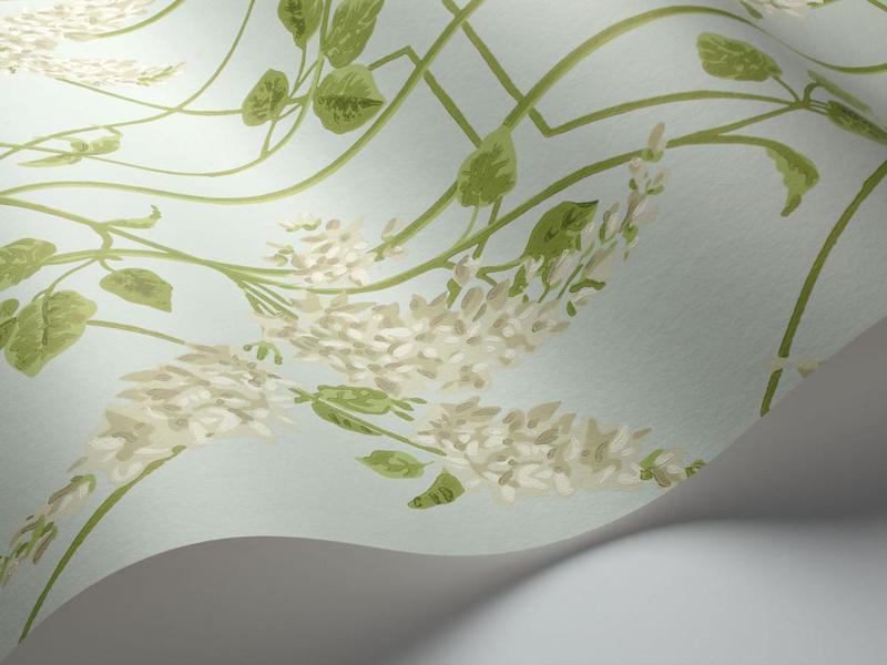 Het klimpad van Wisteria floribunda is overal in het archief van Cole & Son te vinden. Deze bladverliezende, zonminnende zomerbloeier met zijn stralende trossen is bijgewerkt met een hangend, met de hand getekend latwerk om een grafische print te creëren die zowel past in een cottage-tuin als in een eigentijdse omgeving. Met Sur-flex bedrukt, heeft Wisteria een dikke, krijtachtige textuur die elke individuele knop naar voren brengt.