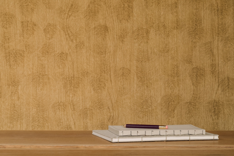 Reliëfvinylbehang met houtaspect.