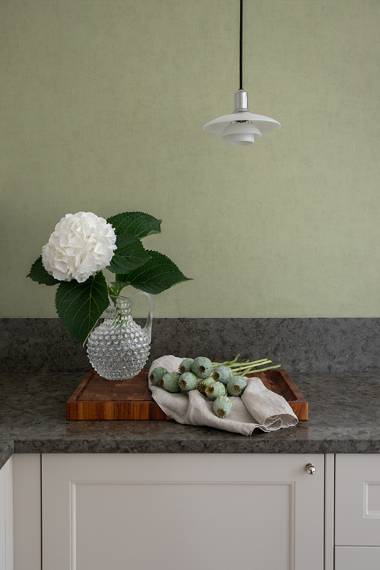 Behangcollectie Kalk bestaat uit uni-kleurtinten Scandinavisch behang, waar gevlekte oppvervlakken een kalkverf-achtige feel geven aan de muur.