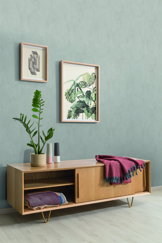 Behangcollectie Kalk bestaat uit uni-kleurtinten Scandinavisch behang, waar gevlekte oppvervlakken een kalkverf-achtige feel geven aan de muur.