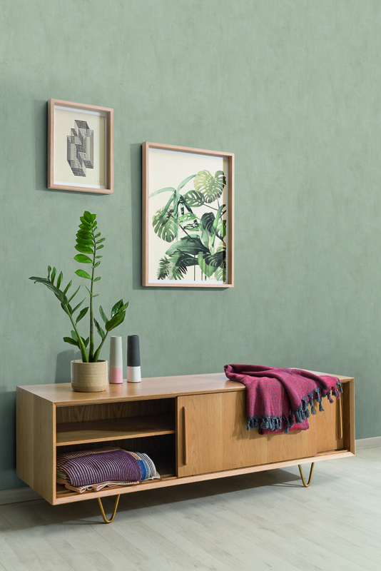 Behangcollectie Kalk bestaat uit uni-kleurtinten Scandinavisch behang, waar gevlekte oppvervlakken een kalkverf-achtige feel geven aan de muur.