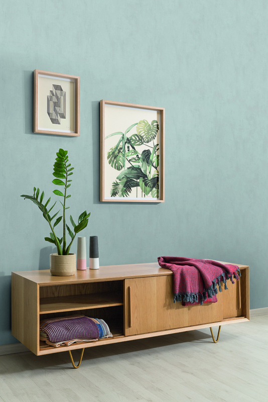 Behangcollectie Kalk bestaat uit uni-kleurtinten Scandinavisch behang, waar gevlekte oppvervlakken een kalkverf-achtige feel geven aan de muur.