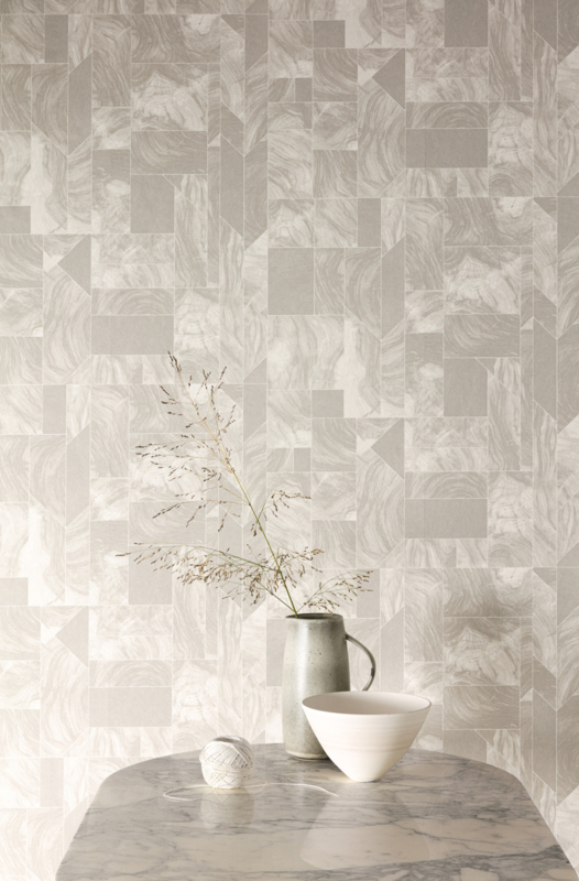 Theila is een combinatie van marmers, de tekening in het marmer is zo mooi en gedetailleerd. Tussen de stukken steen brengen we een fijne lijn aan die zorgt voor een soort glas-in-lood effect.