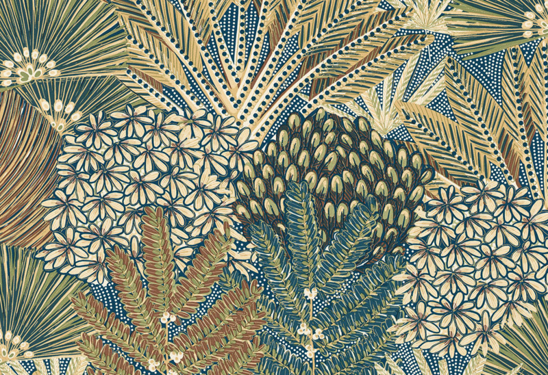 Botanisch design met een lichte glans. Eenvoudig te combineren met één van de uni's.