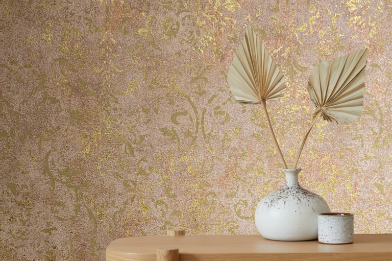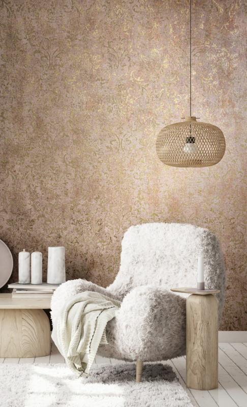 Vintage oppervlakken doordrenkt met fijne metalen inlays creëren een onderscheidend interieur, verlevendigd door contrasten en smeden een prachtige look.
