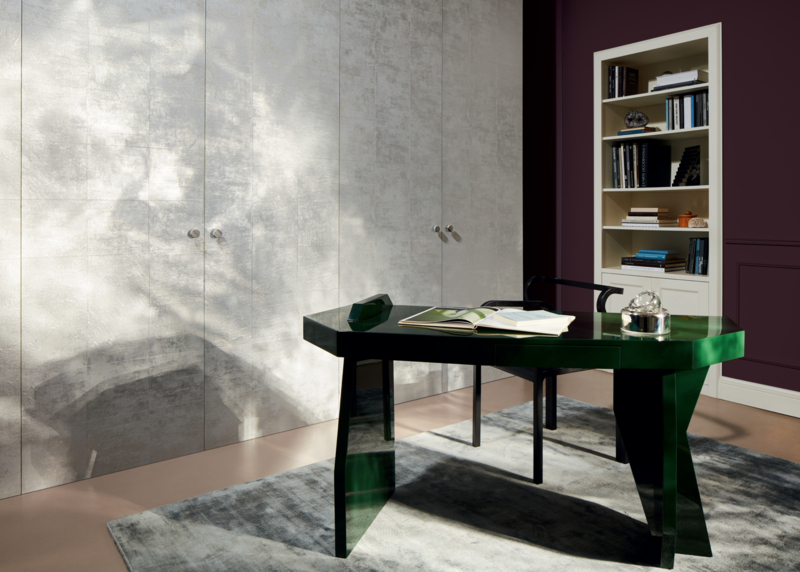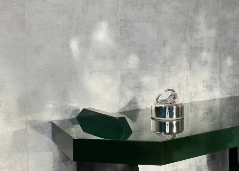 Folievellook op vinylbehang met blokkenpatroon