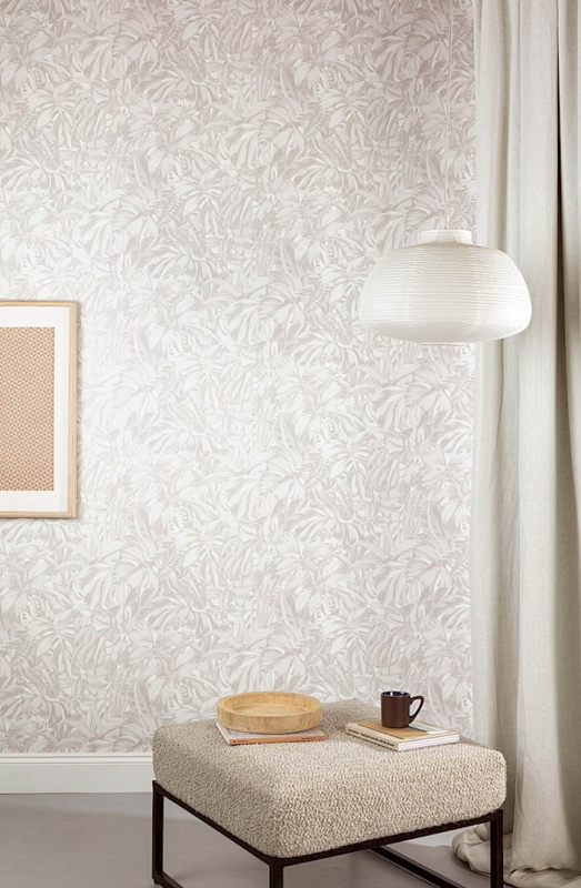Bonita is een collage van etsen van botanische prenten. Je herkent verschillende palmen die samen één allover van bladeren vormen. Dit resulteert in een soort oerwoud-effect en brengt spanning binnen de collectie.