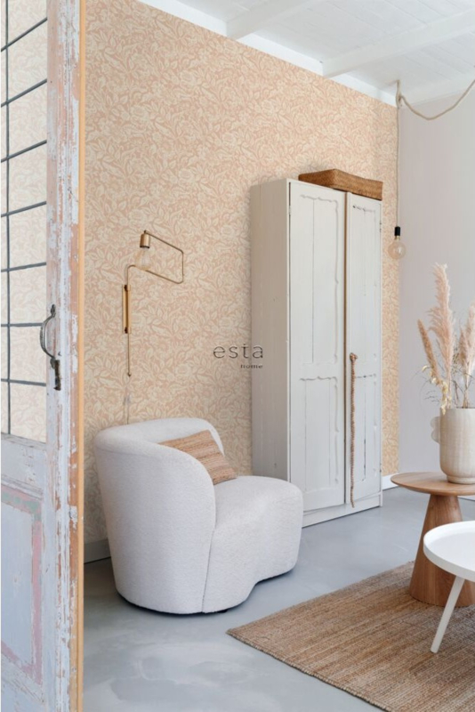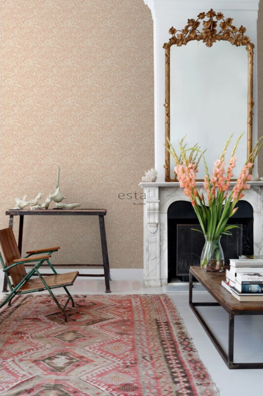 Creëer een gezellige en warme vintage look in huis met dit behang met vintage bloemen in terracotta roze. Het behang roept een heerlijk nostalgisch gevoel op en met vintage accessoires en retro meubels maak je het sfeertje helemaal compleet.