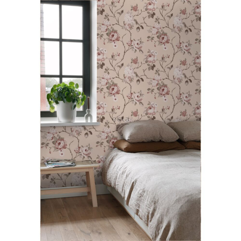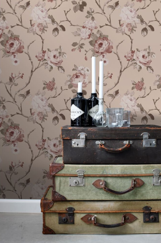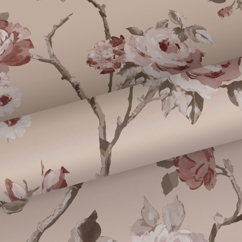 Creëer een gezellige en warme vintage look in huis met dit behang met vintage bloemen in oudroze. Het behang roept een heerlijk nostalgisch gevoel op en met vintage accessoires en retro meubels maak je het sfeertje helemaal compleet.