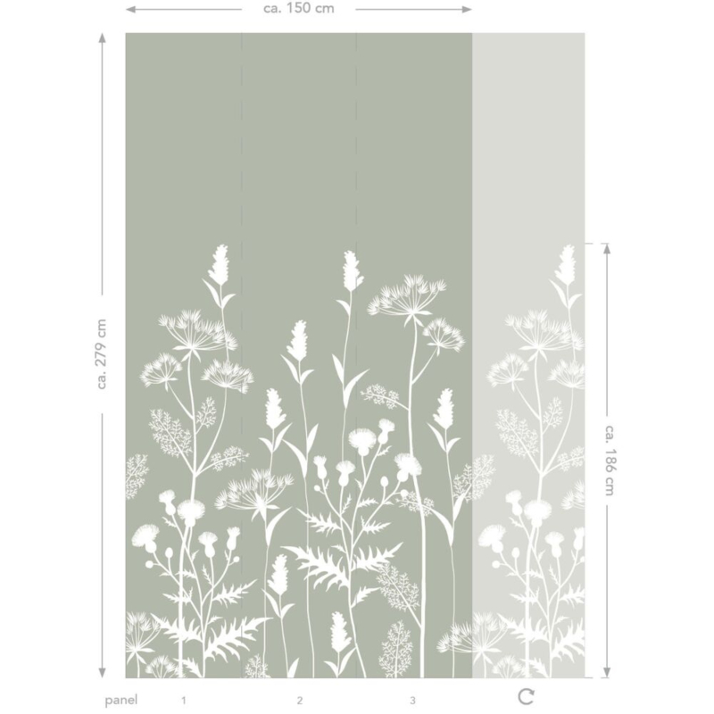 De afmetingen van dit fotobehang zijn 150 x 279 cm (breedte x lengte). De print van dit fotobehang sluit links en rechts aan. Je kunt dus verscheidene fotowanden naast elkaar plakken, zodat de print doorloopt.