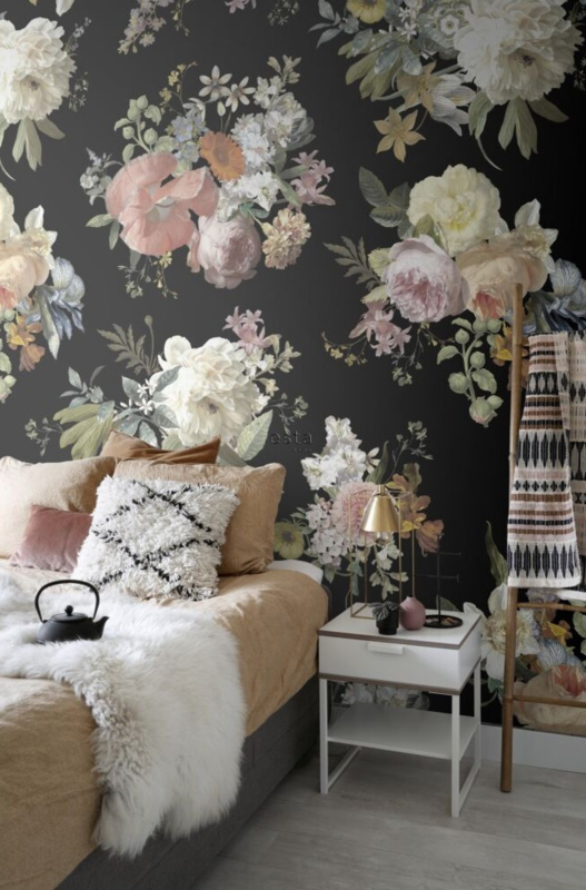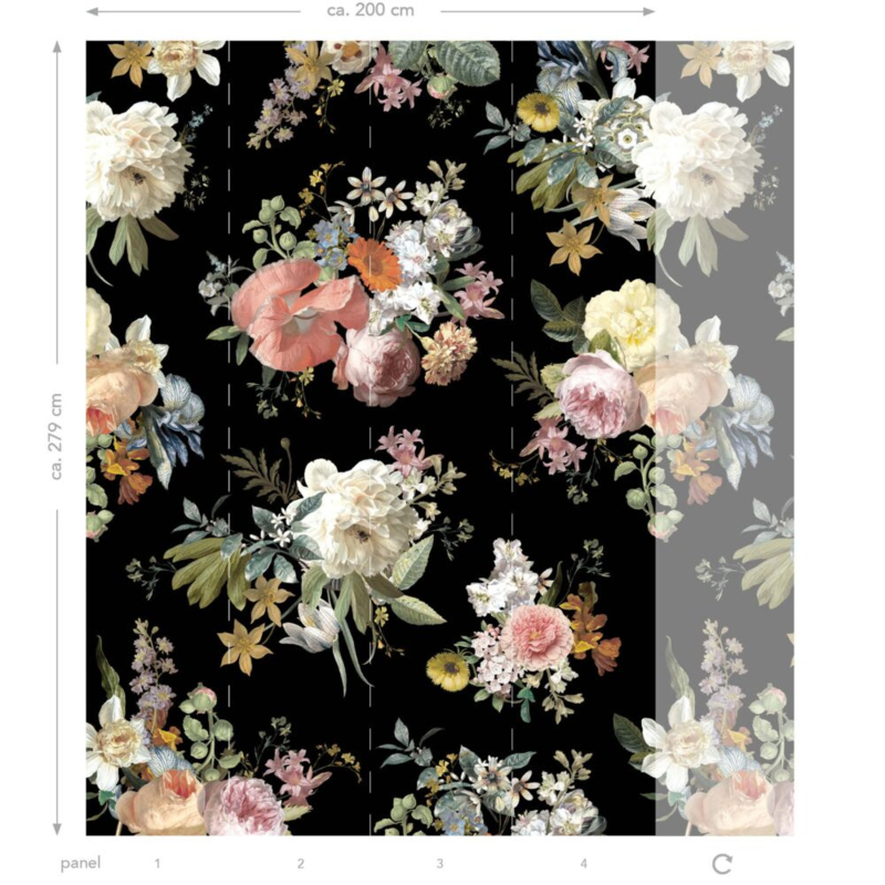 Met dit behang met vintage bloemen in multicolor op zwart creëer je een warme en knusse sfeer in huis. Het behang past perfect bij een brocante, romantische stijl die een fijn nostalgisch gevoel oproept en je eindeloos laat wegdromen naar mooie momenten uit het verleden.