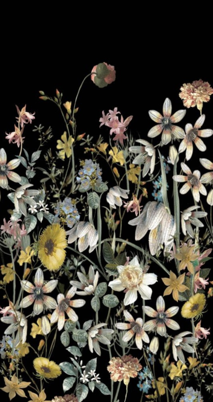 Creëer een gezellige en warme vintage look in huis met dit behang met veldbloemen in multicolor op zwart. Het behang roept een heerlijk nostalgisch gevoel op en met vintage accessoires en retro meubels maak je het sfeertje helemaal compleet.