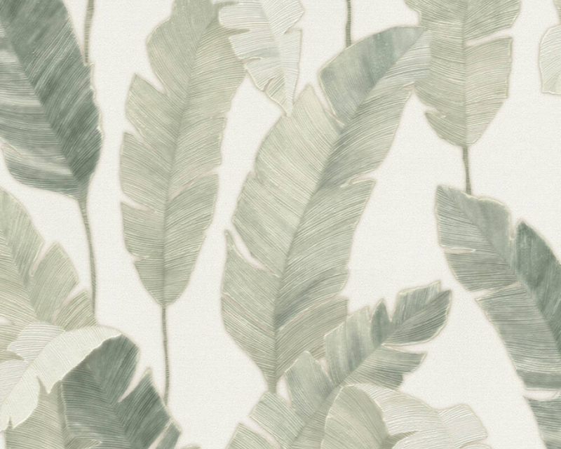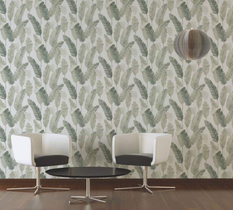 Behang met grote bladeren in crème, beige en groene tinten is een prachtige manier om een botanische sfeer in je huis te creëren. De grote bladeren geven het behang een natuurlijke uitstraling en is perfect voor mensen die houden van de natuur en op zoek zijn naar een kalmerende omgeving in huis.