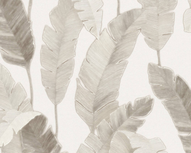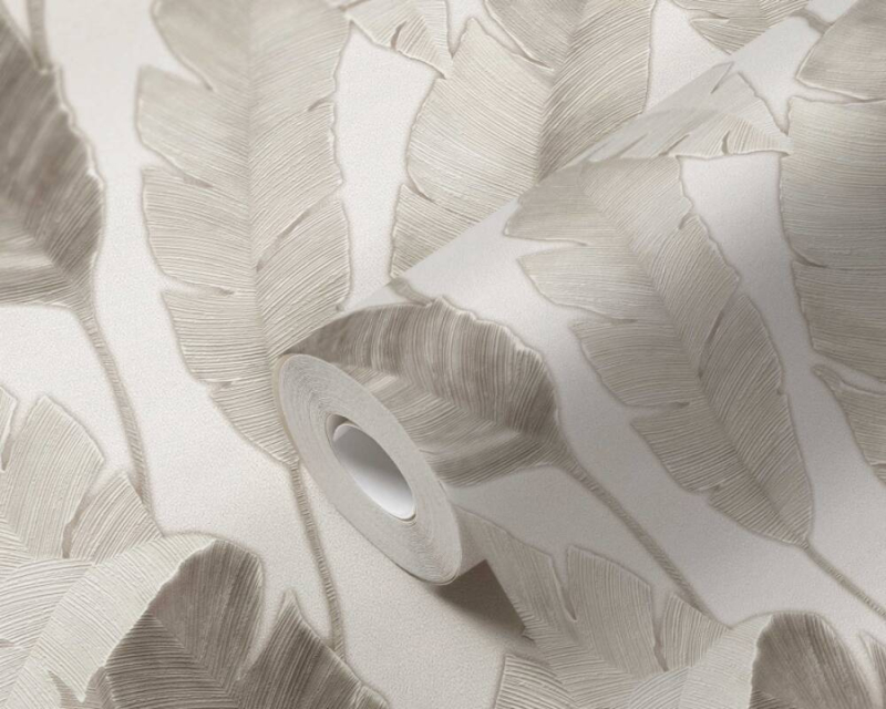 Behang met beige achtergrond en grote botanische bladeren is een prachtige en rustgevende toevoeging aan elke kamer. De warme beige kleur creëert een sfeer van comfort en welzijn, terwijl de grote bladeren een natuurlijke en verfrissende uitstraling geven.