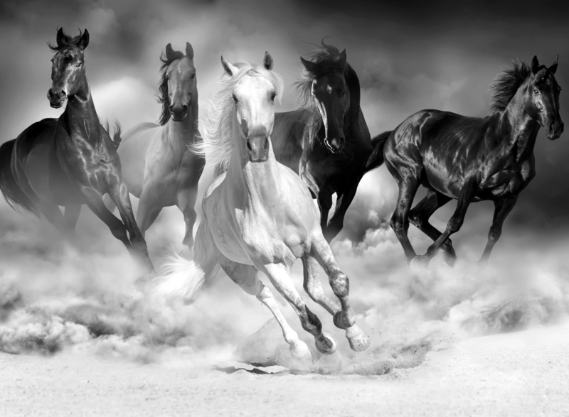 Papermoon Fotobehang Groep Paarden In Galop Zwart-Wit