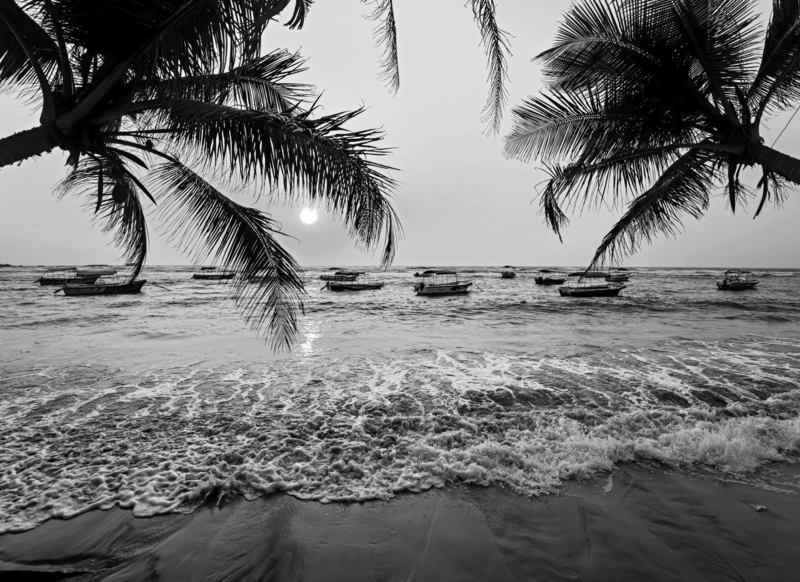 Papermoon Fotobehang Strand Met Boten Zwart-Wit