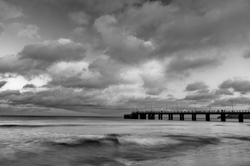 Papermoon Fotobehang Pier Bij Bewolking Zwart-Wit