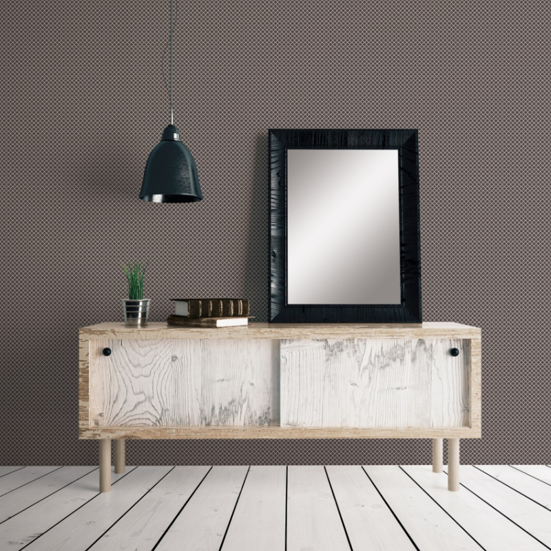 Een behang met een klein patroon in de kleuren grijs en wit is een prachtige keuze voor een landelijk interieur.