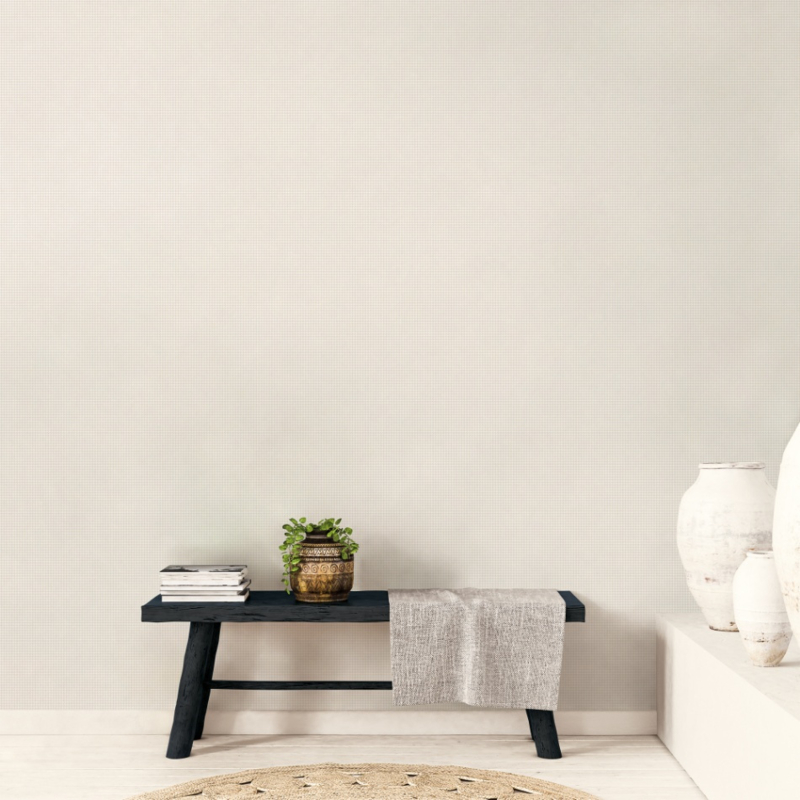 Een behang met een klein ruitjes patroon in de kleuren crème en beige is een prachtige keuze voor een landelijk interieur. Dit type behang biedt een subtiele decoratie die de kamer verfraait en past perfect bij de rustieke sfeer die je wilt creëren.