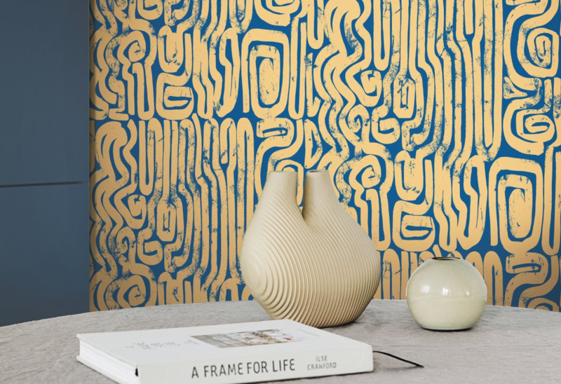 Stap binnen in een wereld van betoverende pracht met ons adembenemende behangdessin: Bantu. Dit unieke ontwerp combineert een diepe, serene blauwe kleur met glinsterende gouden opdruk, waardoor je interieur een ongeëvenaarde weelde en glamour krijgt.