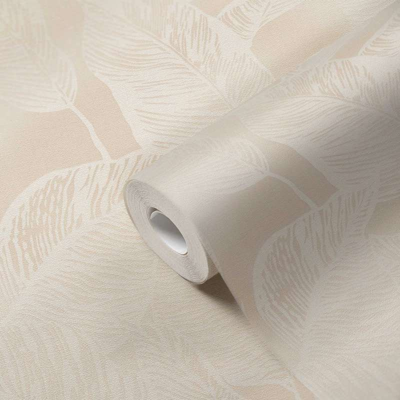 Stel je voor: een prachtige ruimte met een rustgevende sfeer, waar de muren zijn bedekt met een betoverend blauw behang met grote taupe bladeren. Dit harmonieuze ontwerp brengt de schoonheid van de natuur naar binnen, terwijl het tegelijkertijd een vleugje elegantie en stijl toevoegt aan de ruimte.