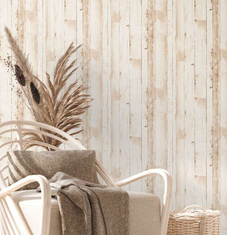 Geef jouw interieur een natuurlijke en warme uitstraling met ons prachtige houtbehang in crème, beige en bruine tinten!