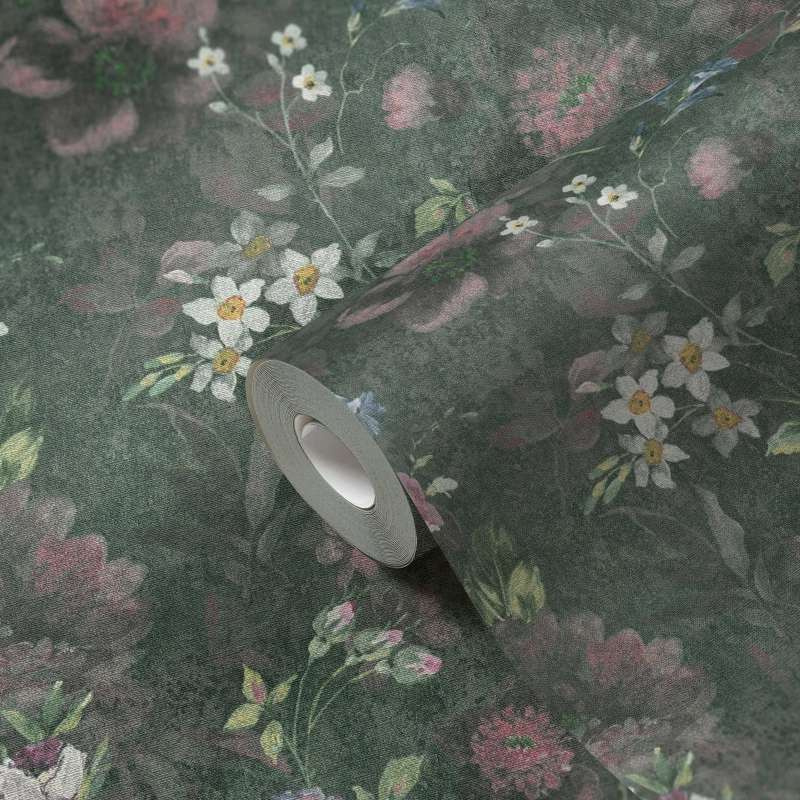 Laat je betoveren door de tederheid van dit adembenemende behang. De delicate bloemen in crème en roze stralen een gevoel van zachtheid en verfijning uit, terwijl de groene achtergrond een vleugje frisheid en vitaliteit toevoegt. Het behang is als een schilderij dat tot leven komt, een kunstwerk dat je interieur verlevendigt en een gevoel van vreugde brengt.