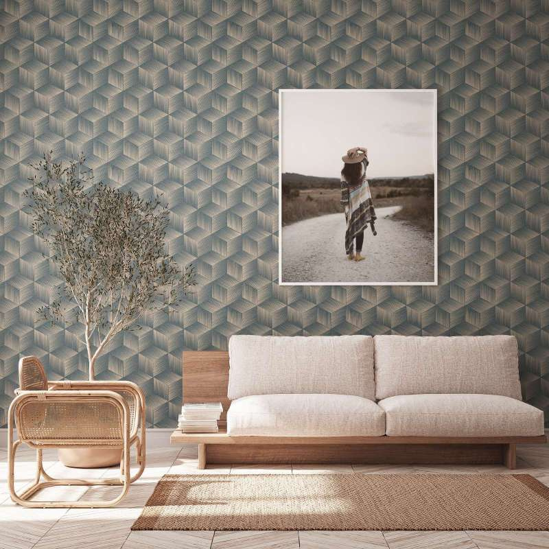 Het grafische behang in blauw en beige is als een kunstwerk dat je muur tot leven brengt. De gedurfde en geometrische patronen creëren een visueel spel van vormen en lijnen, terwijl de kleurencombinatie van blauw en beige een kalme en rustgevende sfeer oproept. Het behang vangt de aandacht en voegt een eigentijdse flair toe aan elke ruimte.