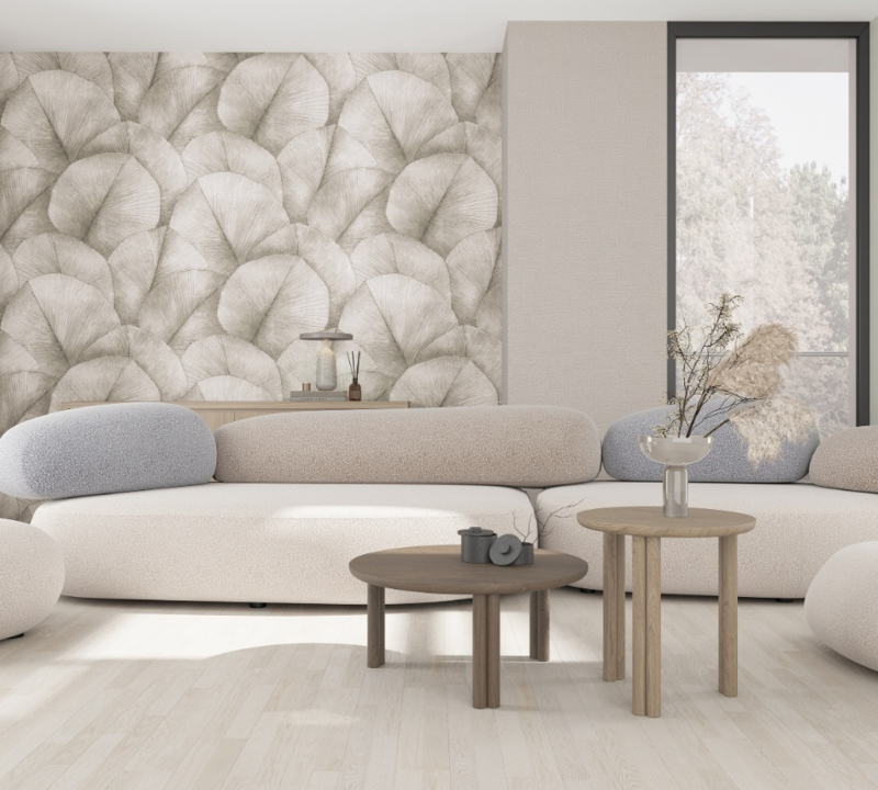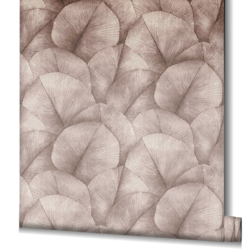 Betreed een wereld van verfijning en natuurlijke pracht met ons taupe behang, versierd met weelderige, grote bladeren. Dit behang voert je mee naar een oase van rust en sereniteit, waar de harmonie tussen de aardetinten en de weelderige natuur tot leven komt.