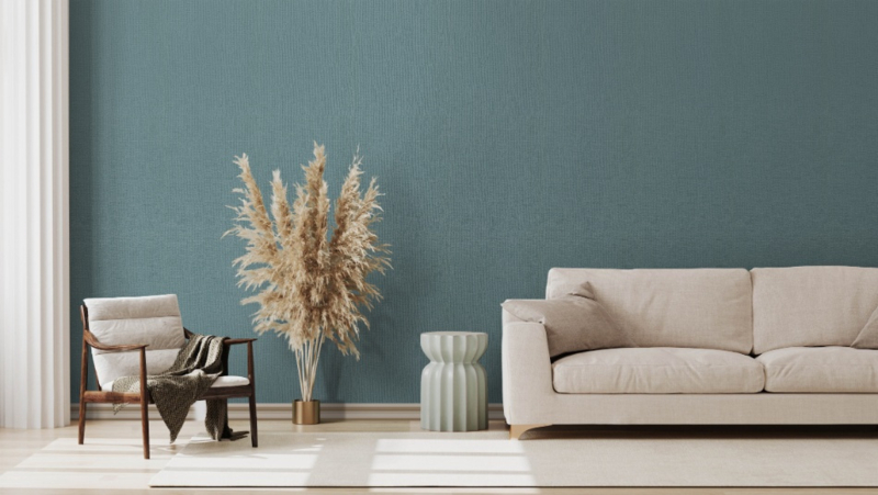 De subtiel geweven textuur op ons behang voegt een gevoel van diepte en tastbaarheid toe aan elke muur. Het diepe blauw roept een gevoel van kalmte en sereniteit op, terwijl de textielstructuur een vleugje luxe en verfijning toevoegt. Het is alsof je wordt omhuld door de fijnste stoffen, waardoor een gevoel van comfort en welzijn ontstaat.